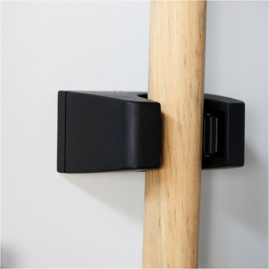 Hang Ups Pole Holders let you insert tools or poles in the front. Inserts are held firmly in place by rubber grips. Holder allows you to quickly snap tools in and out. 14" long design includes three holders. Hanging hardware is included.