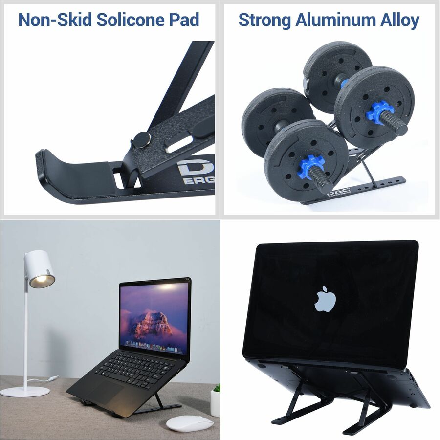 DAC® MP-222 Portable and Adjustable Laptop/Tablet Stand, Black - Upto 15.6" Screen Size Notebook, Tablet, Cell Phone Support - Aluminum Alloy, Silicon - Black