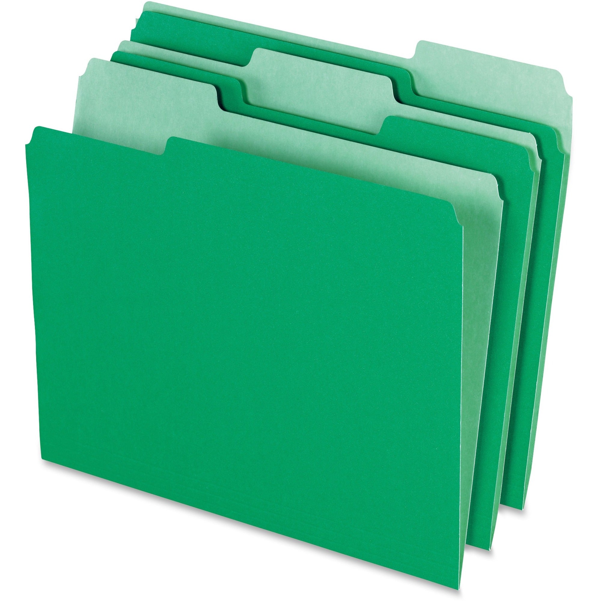 Top-tab folders are ideal for organizing files or archives. Sturdy, 11 point stock protects documents. Folders have straight-cut tab that is 1/2" high. Corners are rounded in front and back. Scored for 3/4" expansion.