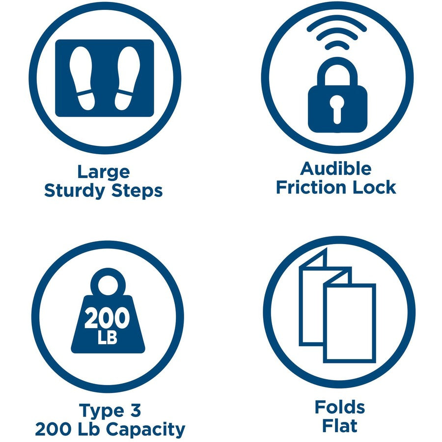 Cosco Ultra-Thin 3-Step Ladder - 3 Step - 200 lb Load Capacity52.8" Height - Black, Platinum