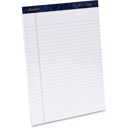 Perforated pad is ideal for office and home use. Watermarked paper will not bleed through. Dark blue binding at top is stapled and glued. Extra-thick, chipboard back offers stiff support when writing. Letter-size sheets are microperforated for clean separation. Each sheet has 11/32" line spacings and a 1-1/4" left margin. Pad contains 50 legal/wide-ruled sheets of 16 lb. paper.