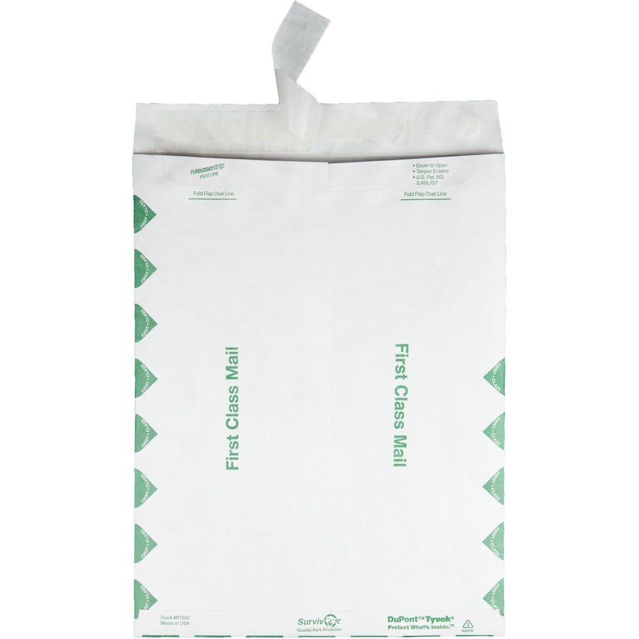 Survivor® 10 x 13 DuPont Tyvek First Class Border Catalog Mailer with Self-Sealing Closure - First Class Mail - #13 1/2 - 10" Width x 13" Length - 14 lb - Peel & Seal - White - Tyvek - 100 / Box
