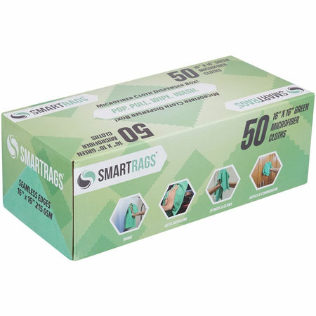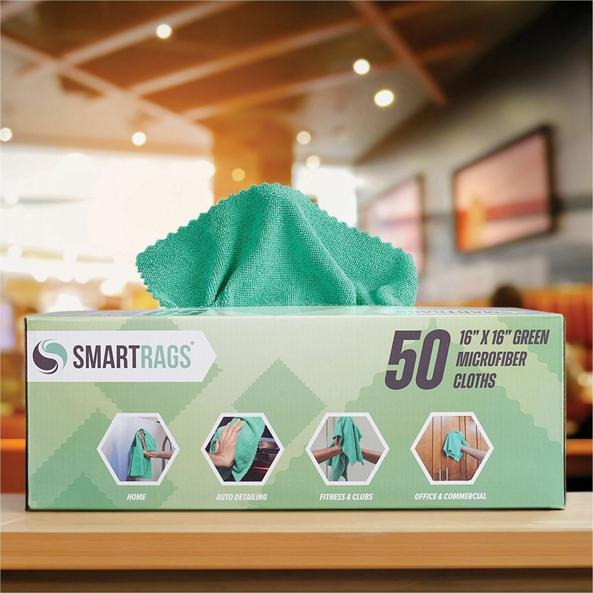 Monarch Smart Rags Microfiber Cloths, 16" x 16", 50 / Box - Reusable, Streak-free, Lint-free, Dirt Resistant, Grime Resistant - Green