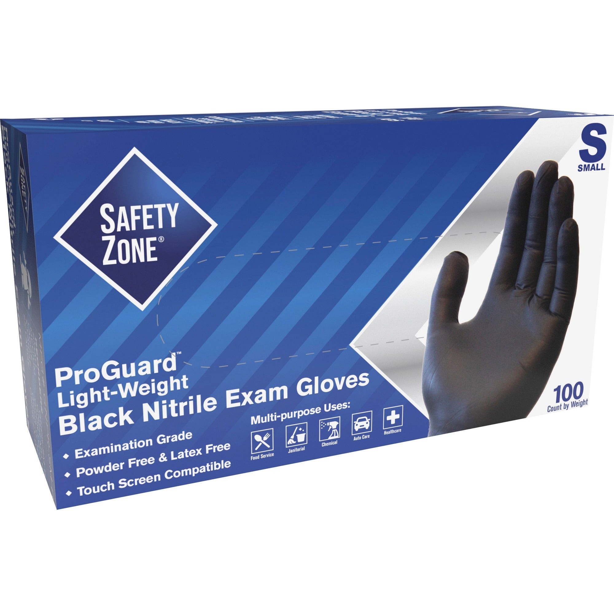 Safety Zone Powder Free Black Nitrile Gloves - 9.65" Glove Length - Small Size - Black - Latex-free, Silicone-free, Allergen-free, Comfortable, Textured, DEHP-free - For Food, Janitorial Use, Cosmetics, Painting, Pet Care, Cleaning, Dishwashing