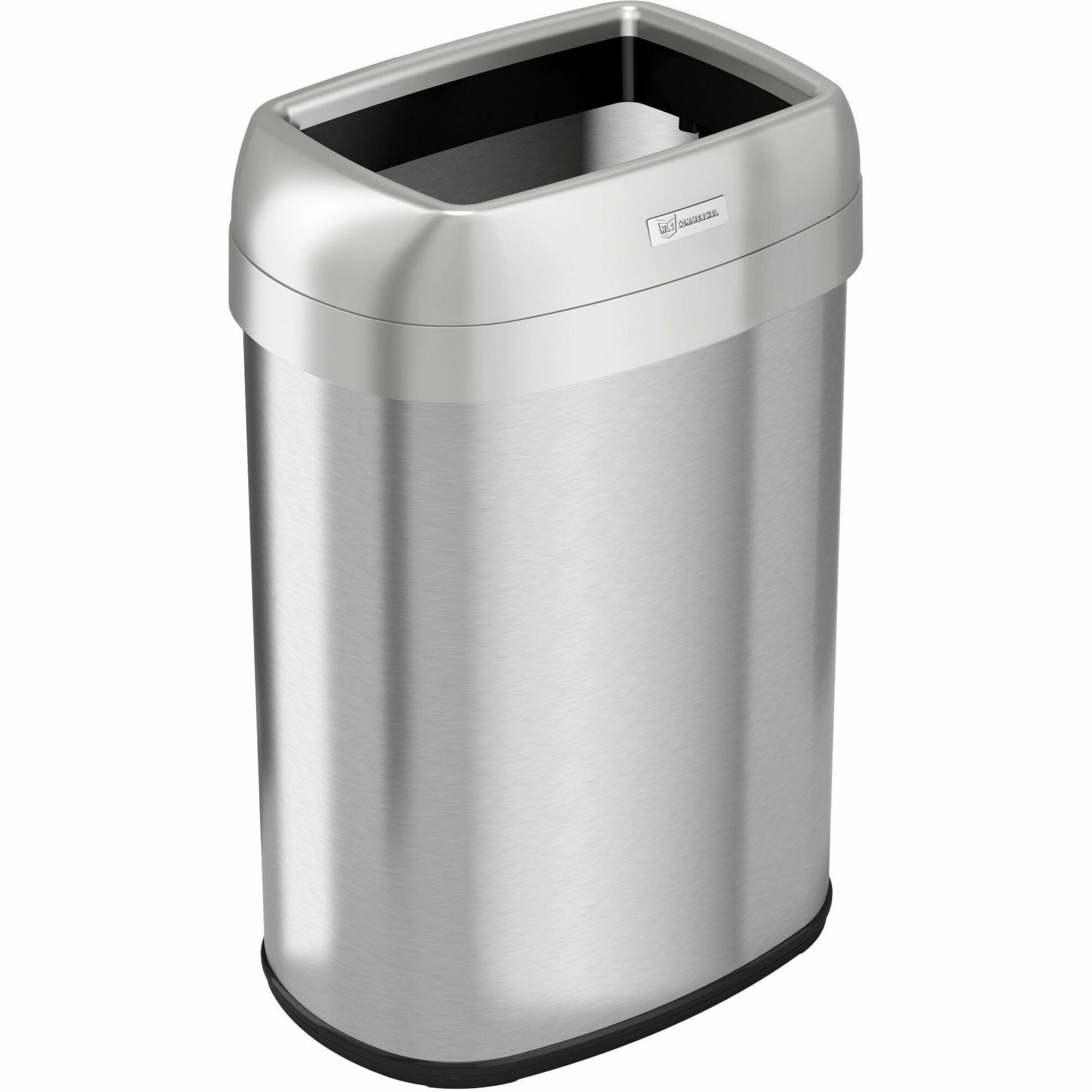 13-Gallon Round Open Top Trash Can features a wide opening to easily accommodate large and bulky items. Heavy-duty, activated carbon filters keep odors out of the surrounding area. Brushed, stainless steel body is fingerprint-proof and wipes down easily for quick cleanings. Open-top design eliminates exposure to surface bacteria. Air vents allow effortless trash bag removal to prevent rips and tears. Convenient carry handle allows quick, easy transportation. Trash can is perfect for lobbies, dining areas, stores and more.