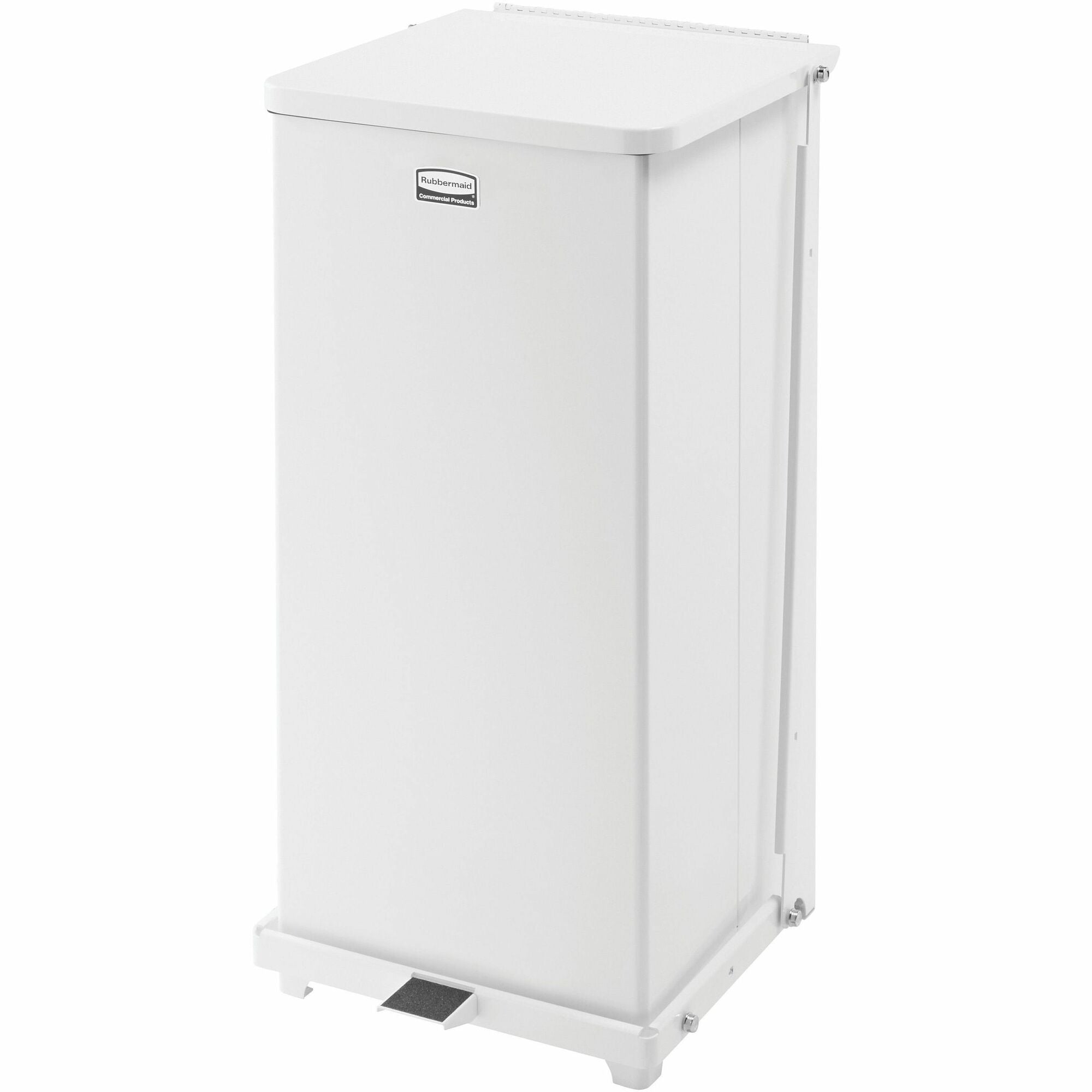Hands-free receptacle offers a sleek design that lets you step on a pedal at the base to open it. Lid closes slowly and quietly to prevent any snap-down effect preventing slamming of the lid. Step-on receptacle is made from stainless steel that is fingerprint-proof to help keep the receptacle sparkling clean. Receptacle includes a rigid plastic liner with a built-in bag retainer to hold the bag in place.