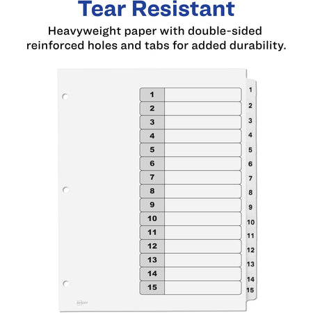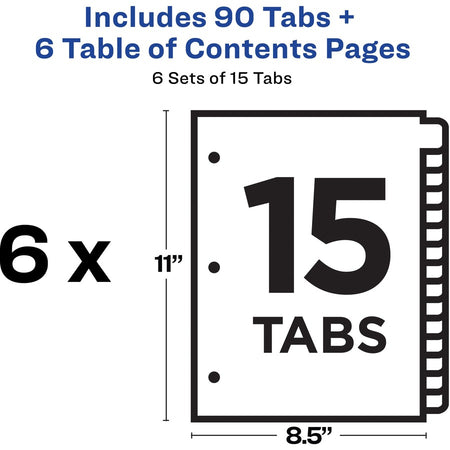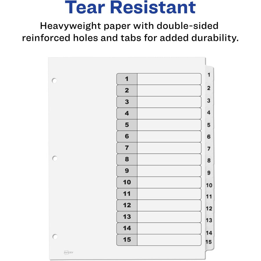 Avery® 15-tab Custom Table of Contents Dividers - 90 x Divider(s) - 1-15, Table of Contents - 15 Tab(s)/Set - 8.5" Divider Width x 11" Divider Length - 3 Hole Punched - White Paper Divider - White Paper Tab(s) - 6 / Pack