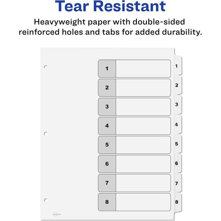 Avery® 8-tab Custom Table of Contents Dividers - 48 x Divider(s) - 1-8, Table of Contents - 8 Tab(s)/Set - 8.5" Divider Width x 11" Divider Length - 3 Hole Punched - White Paper Divider - White Paper Tab(s) - 6 / Pack