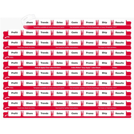 Avery® 8 Tab Easy Print & Apply Clear Label Sheet Refills (11226) - Inkjet, Laser - Clear - Plastic - 3 Total Sheets - 30/Pack - 240 / Pack