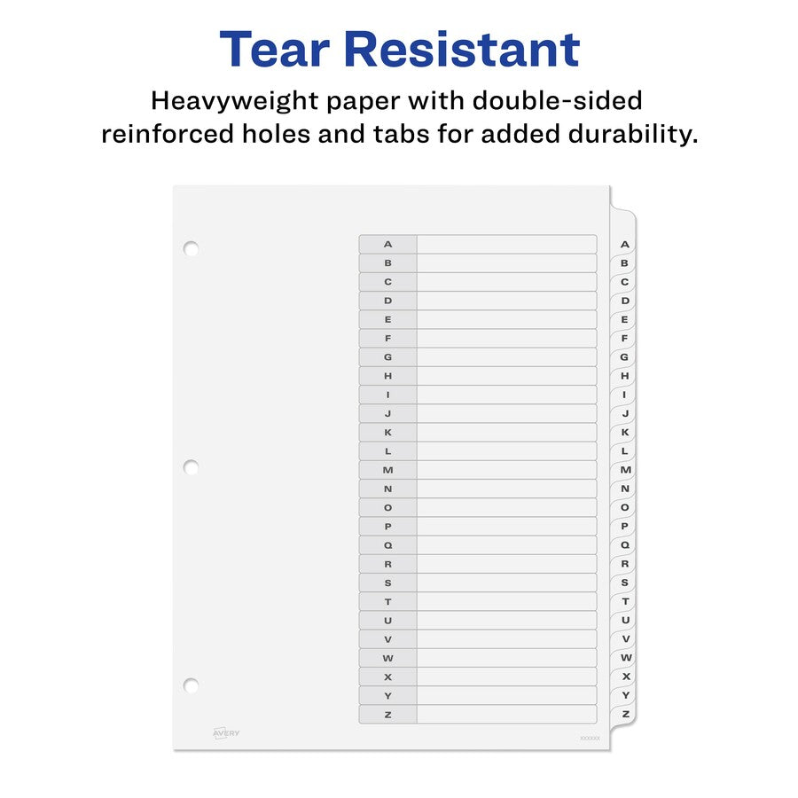 Avery® A-Z Black & White Table of Contents Dividers - 26 x Divider(s) - A-Z, Table of Contents - 26 Tab(s)/Set - 8.5" Divider Width x 11" Divider Length - 3 Hole Punched - White Paper Divider - White Paper Tab(s) - 26 / Set