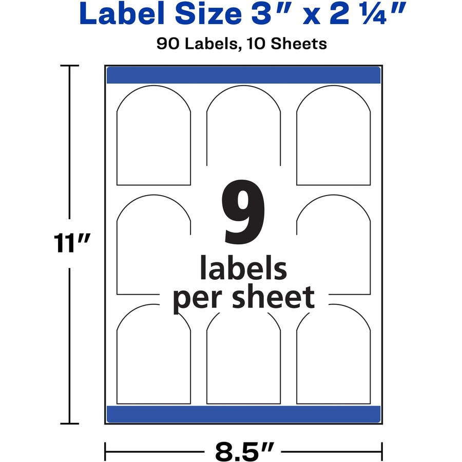 Avery® Arched Labels - Sure Feed - Print-to-the-Edge - 3" Width x 2 1/4" Length - Permanent Adhesive - Arched Rectangle - Laser - Matte White - Paper - Water Resistant - 9 / Sheet - 10 Total Sheets - 90 Total Label(s) - 90 / Pack