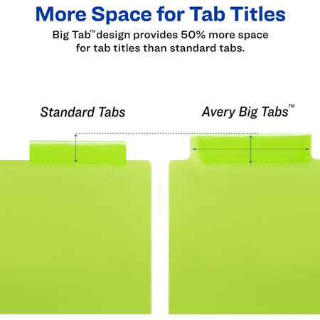 Avery® Big Tab Index Divider - 8 x Divider(s) - Write-on, Print-on Tab(s) - 8 - 8 Tab(s)/Set - 11" Divider Width x 17" Divider Length - 3 Hole Punched - Multicolor Plastic Divider - Multicolor Plastic Tab(s) - 8 / Set