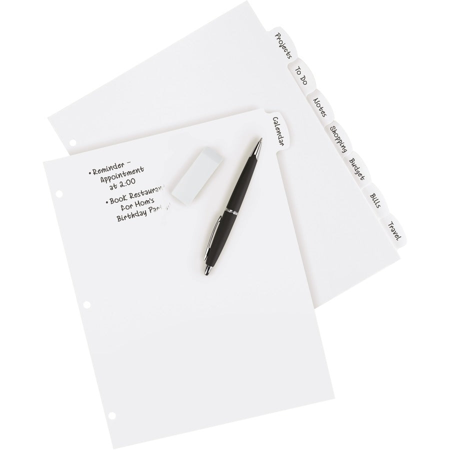 Avery® Big Tab Write & Erase Dividers - 8 x Divider(s) - Write-on Tab(s) - 8 - 8 Tab(s)/Set - 8.5" Divider Width x 11" Divider Length - 3 Hole Punched - White Plastic Divider - White Plastic Tab(s) - 8 / Set
