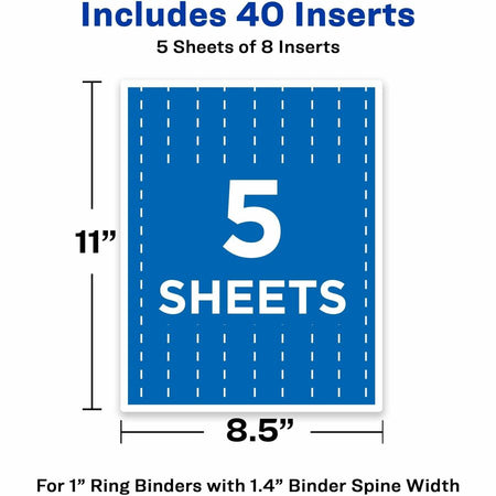 Avery® Binder Spine Inserts, 1 Inch Binders, 40 Inserts (89103) - 1.4" Width - 40 Capacity - For 1" Sheet - 3 x Rings - Ring Binder - Bright White - Card Stock