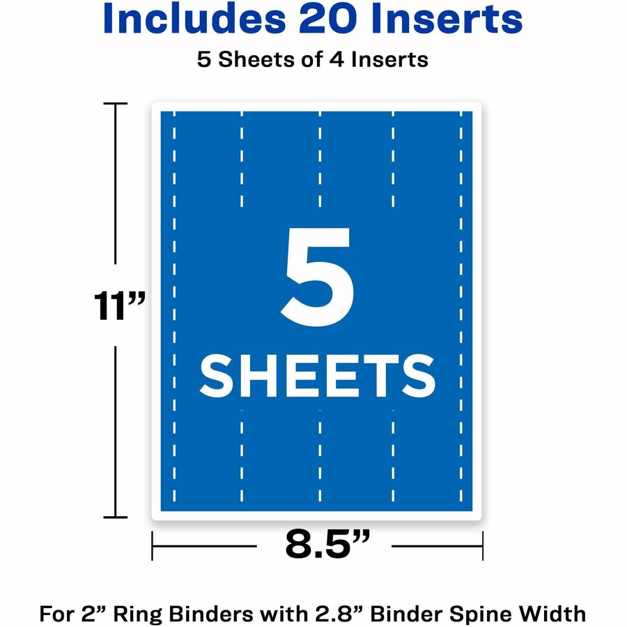 Avery® Binder Spine Inserts, 2 Inch Binders, 20 Inserts (89107) - 2.8" Width - For 2" Sheet - 3 x Rings - Ring Binder - Bright White - Card Stock