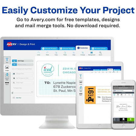 Avery® Easy Peel Address Label - 2 5/8" Height x 1" Width - Permanent Adhesive - Rectangle - Laser, Inkjet - Clear - Film - Pop Up Edge, Jam-free, Foldable, Easy Peel - 30 / Sheet - 35 Total Sheets - 1050 Total Label(s) - 1050 / Carton