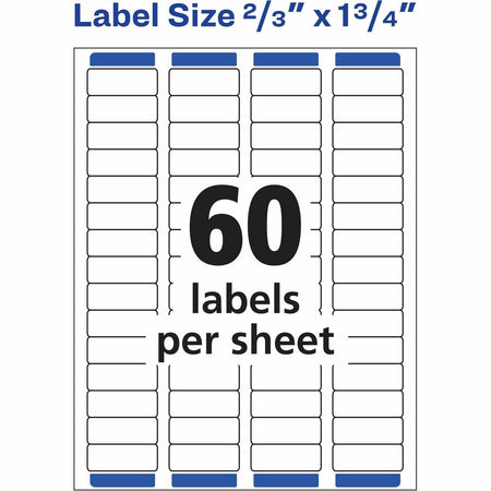 Avery® Easy Peel Mailing Laser Labels - 2/3" Width x 1 3/4" Length - Permanent Adhesive - Rectangle - Laser - White - Paper - 60 / Sheet - 25 Total Sheets - 1500 Total Label(s) - 1500 / Pack