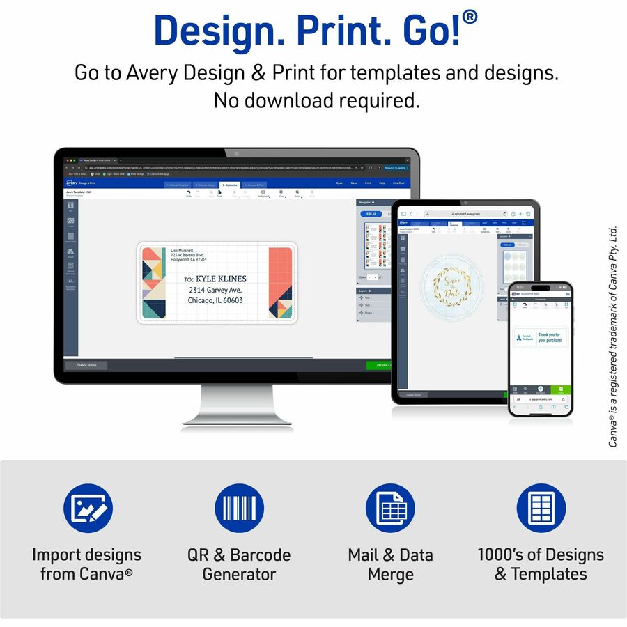 Avery® Easy Peel® Address Labels with Sure Feed™ Technology - 1" Width x 2 5/8" Length - Permanent Adhesive - Rectangle - Laser - White - Paper - 30 / Sheet - 100 Total Sheets - 3000 Total Label(s) - 3000 / Box