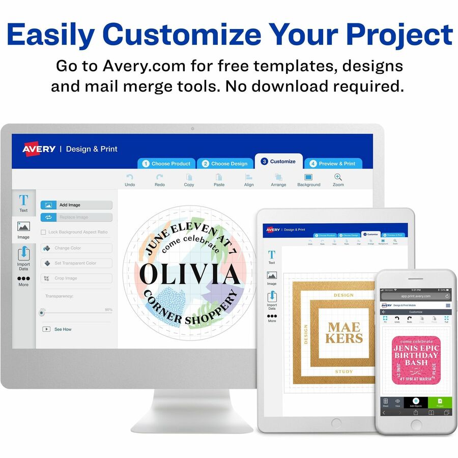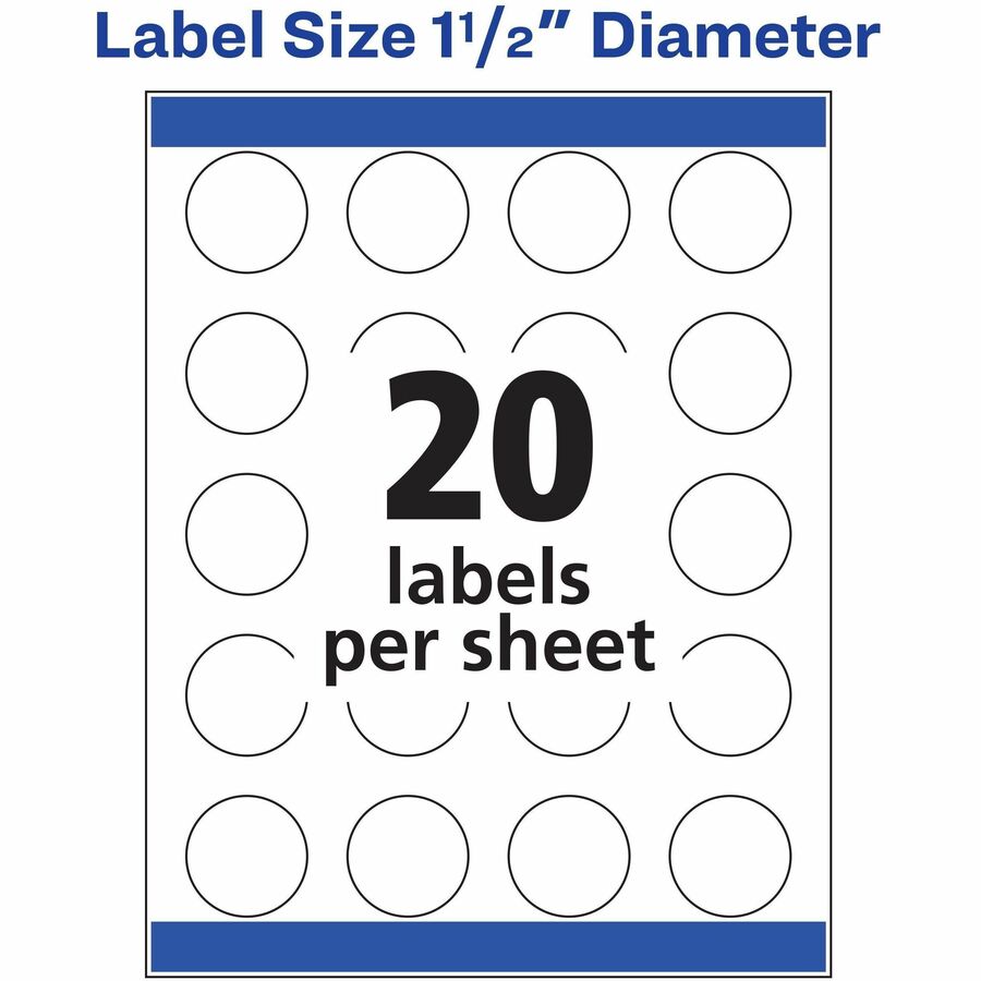 Avery® High Visibility Round Labels - 1 1/2" Diameter - Permanent Adhesive - Round - Inkjet - Matte - White - Paper - Print-to-the Edge, Permanent Adhesive, Stick & Stay - 20 / Sheet - 20 Total Sheets - 400 Total Label(s) - 400 / Pack