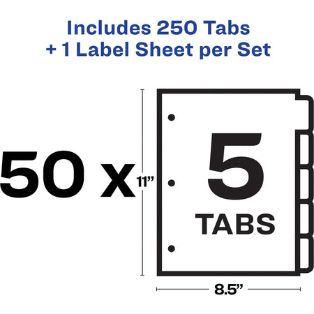 Avery® Index Maker Index Divider - 250 x Divider(s) - Print-on Tab(s) - 5 - 5 Tab(s)/Set - 8.5" Divider Width x 11" Divider Length - 3 Hole Punched - White Paper Divider - White Paper Tab(s) - 50 / Box