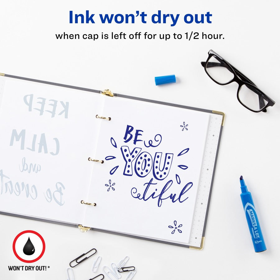 Avery®Marks-A-Lot Desk-Style Permanent Markers - 4.762500 mm Regular Chisel Marker Point - Blue Ink - Blue Plastic Barrel - 1 Dozen