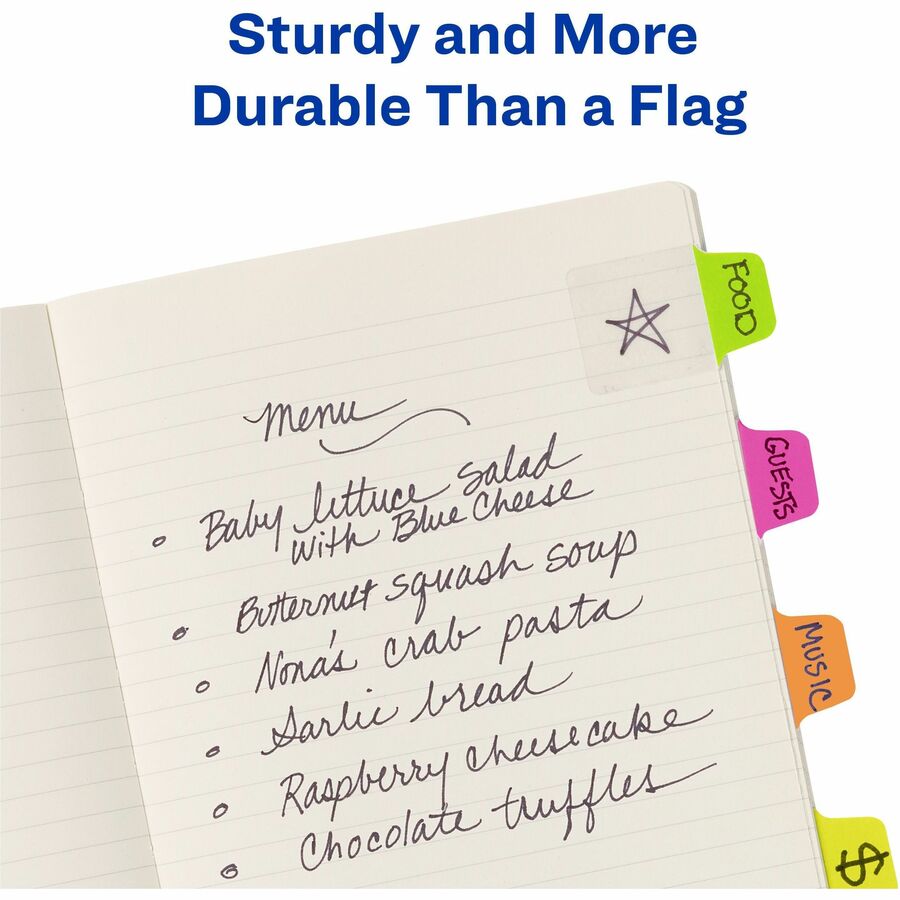 Avery® Mini Ultra Tabs - 80 Tab(s) - 1.50" Tab Height x 1" Tab Width - Clear Film, Neon Pink Paper, Neon Yellow, Neon Green, Neon Orange Tab(s) - 80 / Pack