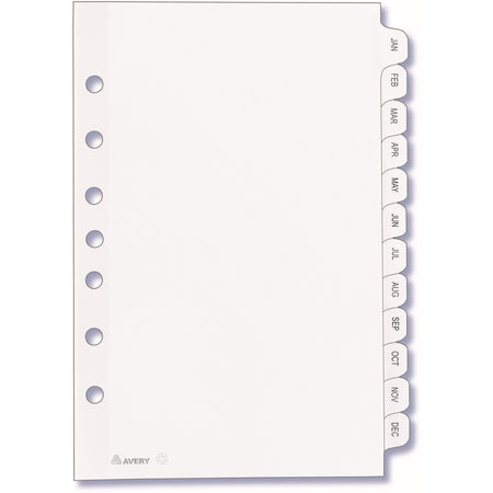 Avery® Monthly Preprinted Tab Dividers - 12 x Divider(s) - Jan-Dec - 12 Tab(s)/Set - 5.5" Divider Width x 8.50" Divider Length - 7 Hole Punched - White Paper Divider - White Paper Tab(s) - 20% Recycled - 12 / Set