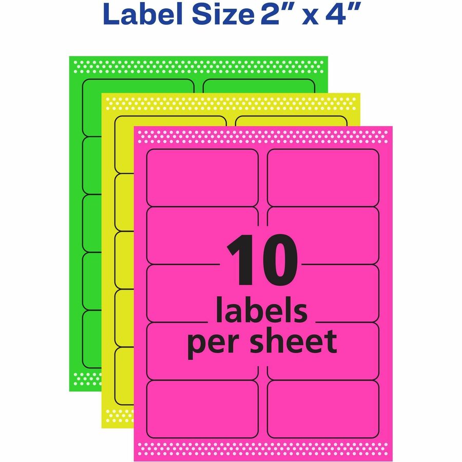 Avery® Multipurpose Labels - 2" Width x 4" Length - Removable Adhesive - Rectangle - Inkjet, Laser - Neon Green, Neon Magenta, Neon Yellow - Paper - 10 / Sheet - 12 Total Sheets - 120 Total Label(s) - 120 / Pack