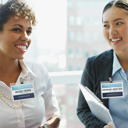 Avery® Name Badges with Clips, 2.25" x 3.5" , 100 Badges (74461) - Legal - 8 1/2" x 11" - Durable, Reusable, Printable, Clip, Micro Perforated - White - 13 Sheets - 100 / Box