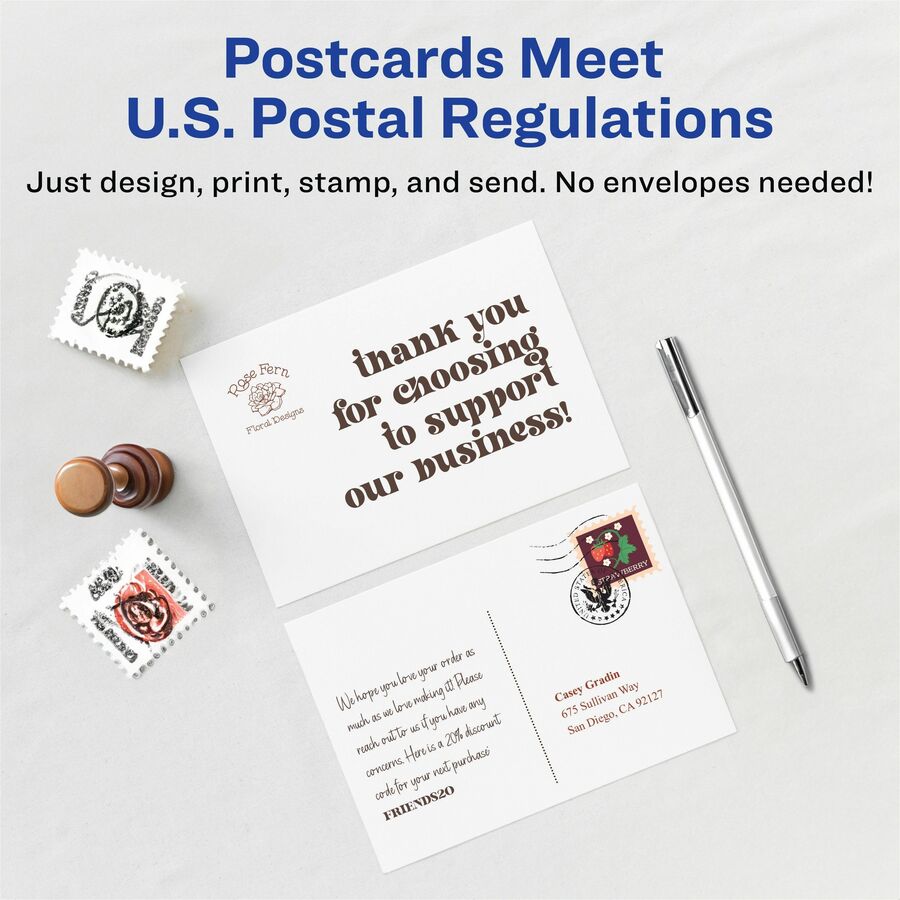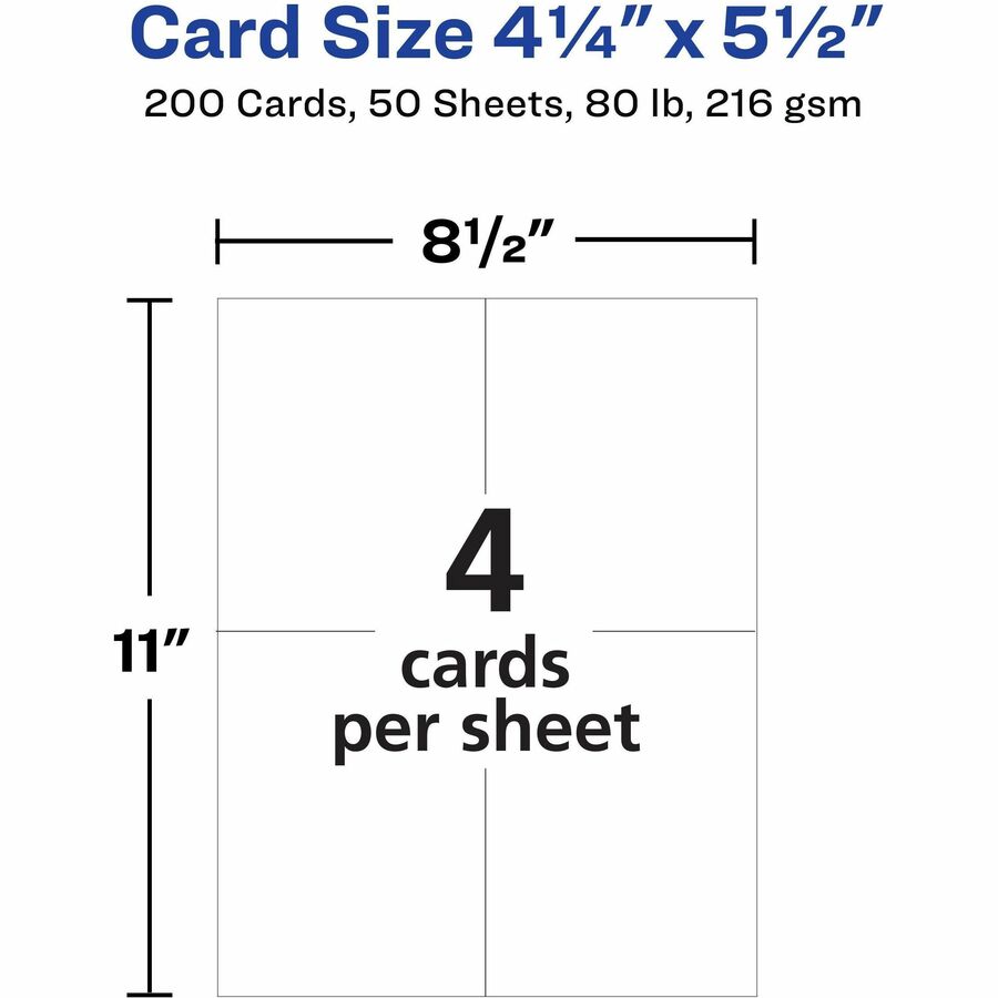 Avery® Postcards - 97 Brightness - 5 1/2" x 4 1/4" - 80 lb Basis Weight - 216 g/m² Grammage - Matte - Perforated, Heavyweight, Rounded Corner, Jam-free, Smudge-free, Double-sided, Uncoated, Recyclable, Biodegradable, Printable - White - 200 / Box