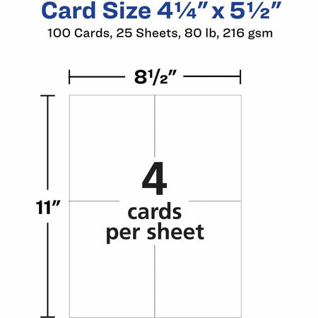 Avery® Postcards, Ivory, Two-Sided, 4-1/4" x 5-1/2" , 100 Cards (5919) - 79 Brightness - 4 1/4" x 5 1/2" - 80 lb Basis Weight - 216 g/m² Grammage - Matte - Rounded Corner, Sturdy, Double-sided, Printable, Uncoated, Perforated - Ivory - 100 / Box