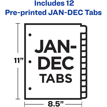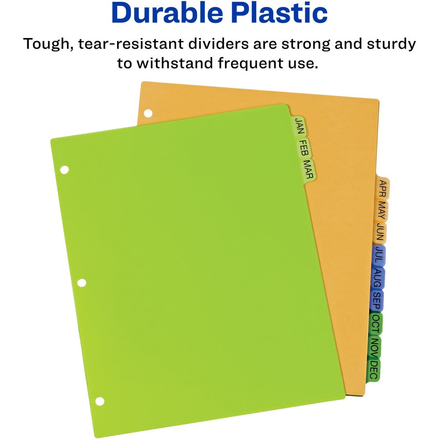 Avery® Preprinted Monthly Tabs Plastic Dividers - 12 x Divider(s) - Jan-Dec - 12 Tab(s)/Set - 8.5" Divider Width x 11" Divider Length - 3 Hole Punched - Multicolor Plastic Divider - Multicolor Plastic Tab(s) - 12 / Set