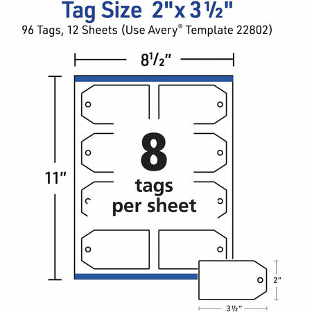 Avery® Printable Tags with String, 2" x 3.5" , 96 White Tags (22802) - 3.50" Length x 2" Width - Rectangular - String Fastener - Card Stock - White - 96 / Pack