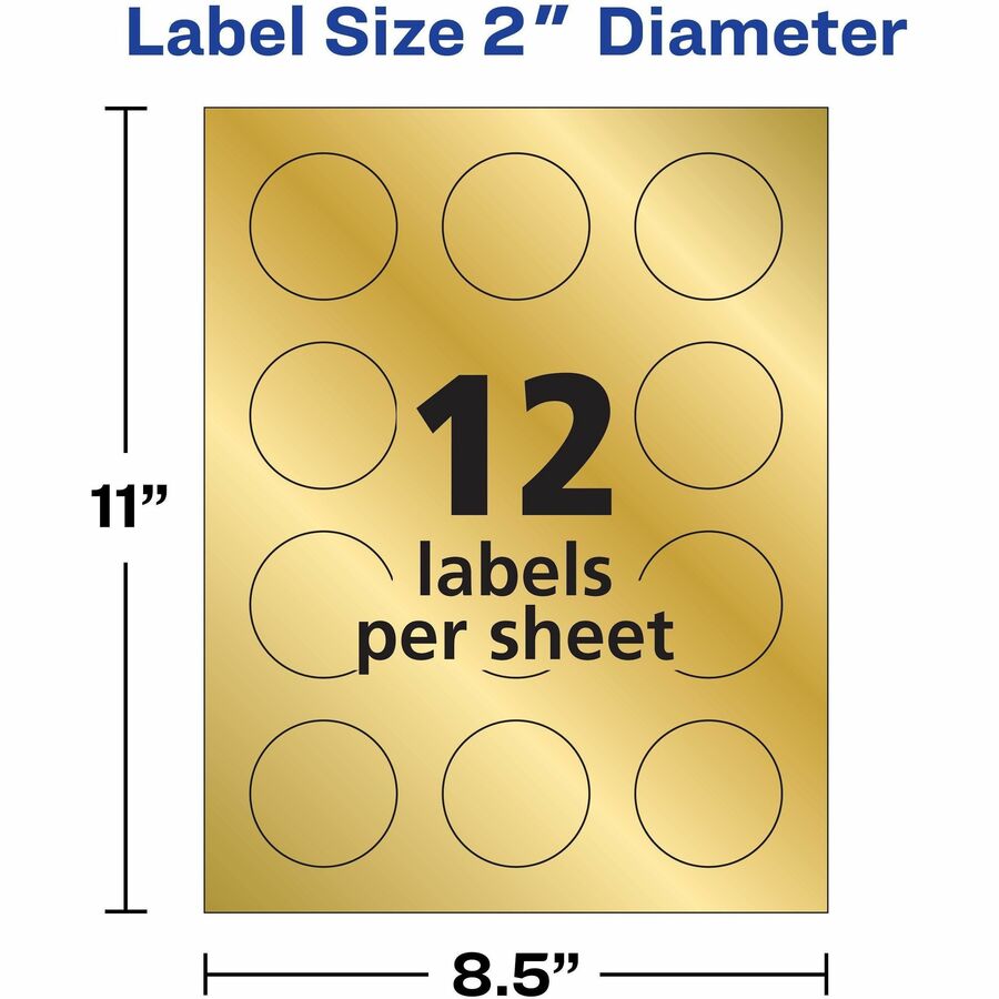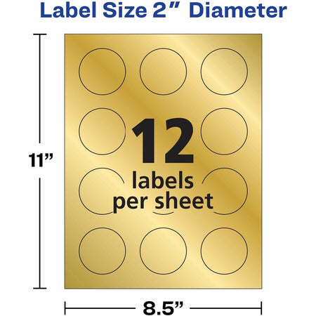 Avery® Promotional Label - x 2" Diameter - Permanent Adhesive - Round - Inkjet - Matte Gold - Matte - Paper - 12 / Sheet - 12 Total Sheets - 96 Total Label(s) - 8 / Pack