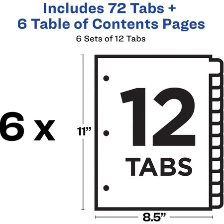 Avery® Ready Index 12-tab Custom TOC Dividers - 72 x Divider(s) - 1-12, Table of Contents - 12 Tab(s)/Set - 8.5" Divider Width x 11" Divider Length - 3 Hole Punched - White Paper Divider - White Paper Tab(s) - 6 / Pack