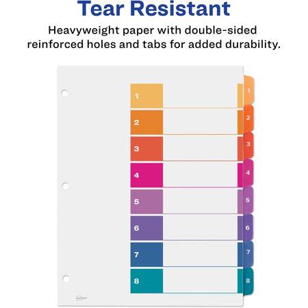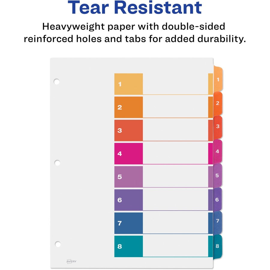 Avery® Ready Index 8-tab Dividers - 24 x Divider(s) - 1-8 - 8 Tab(s)/Set - 8.5" Divider Width x 11" Divider Length - 3 Hole Punched - White Paper Divider - Multicolor Paper Tab(s) - 3/Pack - 12 / Carton