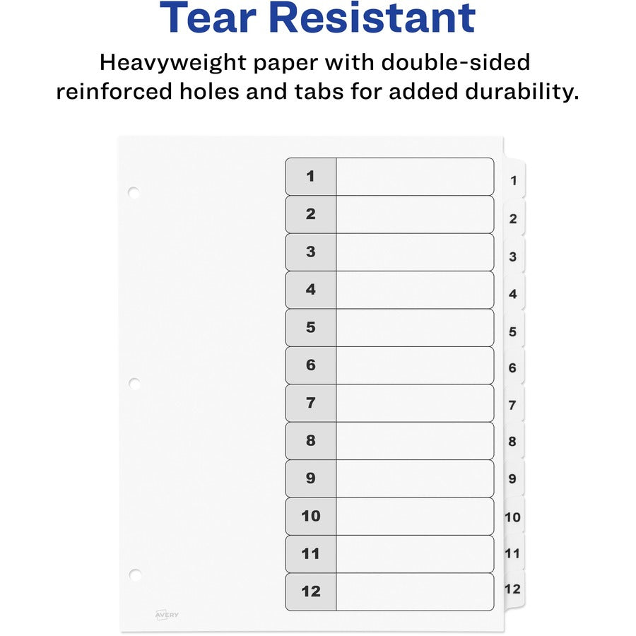 Avery® Ready Index Classic Tab Binder Dividers - 288 x Divider(s) - 288 Tab(s) - 1-12 - 12 Tab(s)/Set - 8.5" Divider Width x 11" Divider Length - 3 Hole Punched - White Paper Divider - White Paper Tab(s) - 3 Sets/Pack - 8 / Carton