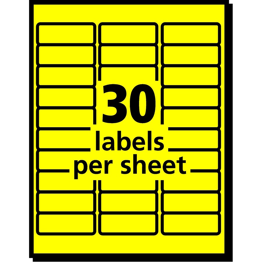 Avery® Shipping Labels - 1" Width x 2 5/8" Length - Permanent Adhesive - Rectangle - Laser - Neon Yellow - Paper - 30 / Sheet - 25 Total Sheets - 750 Total Label(s) - 750 / Pack