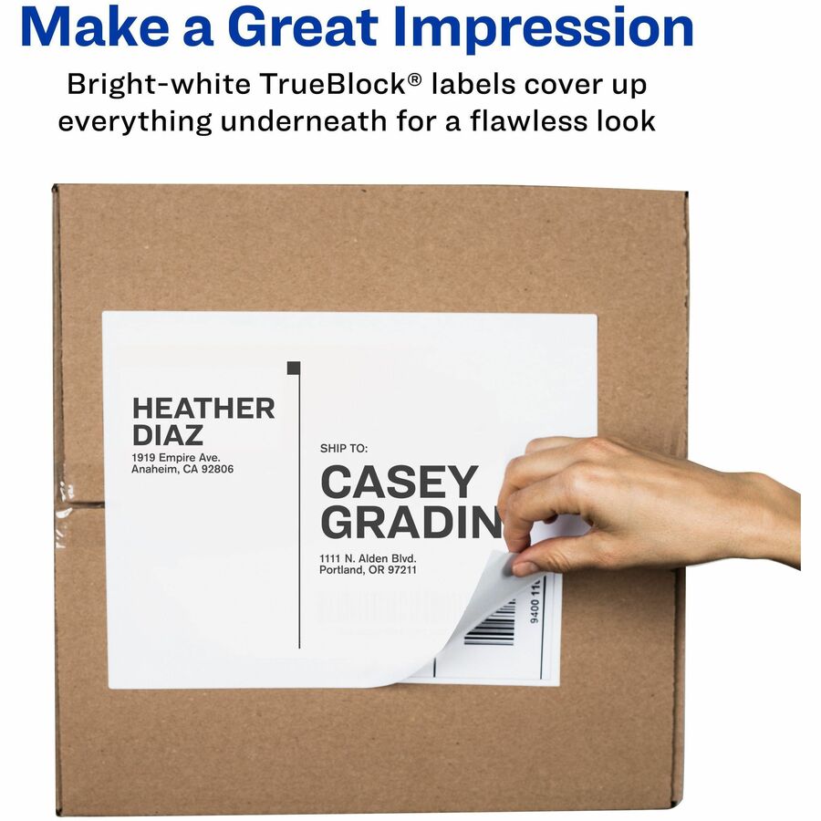 Avery® Shipping Labels - TrueBlock - 8 1/2" Width x 11" Length - Permanent Adhesive - Rectangle - Laser, Inkjet - White - Jam-free, Smudge-free - 1 / Sheet - 25 / Pack