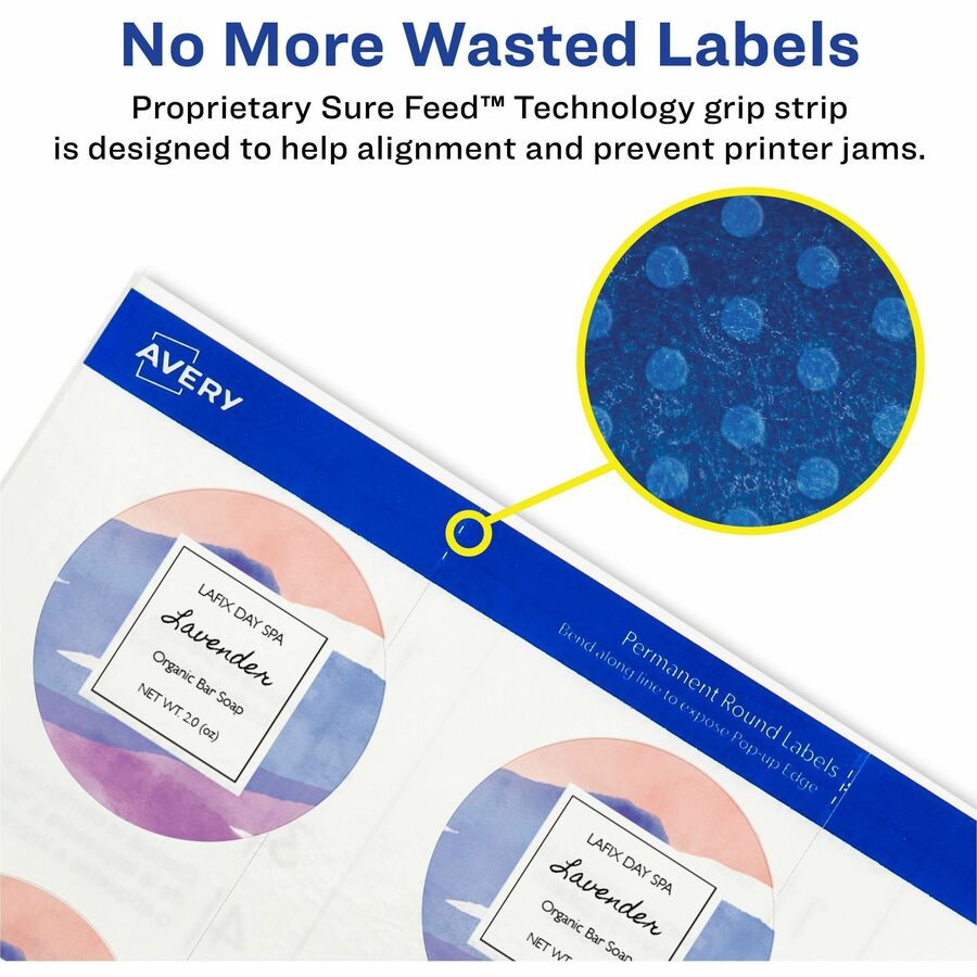 Avery® Sure Feed Glossy Clear Round Labels - 3/4" Diameter - Permanent Adhesive - Round - Inkjet, Laser - Crystal Clear - Film - 80 / Sheet - 5 Total Sheets - 400 Total Label(s) - 400 / Pack