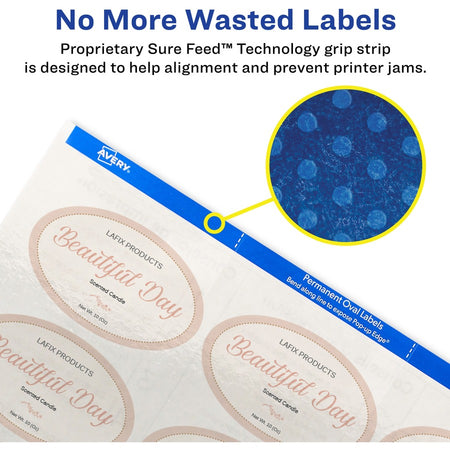 Avery® Sure Feed Glossy Labels - 1 1/2" Width x 2 1/2" Length - Permanent Adhesive - Oval - Laser, Inkjet - Crystal Clear - Film - 18 / Sheet - 10 Total Sheets - 180 Total Label(s) - 180 / Pack
