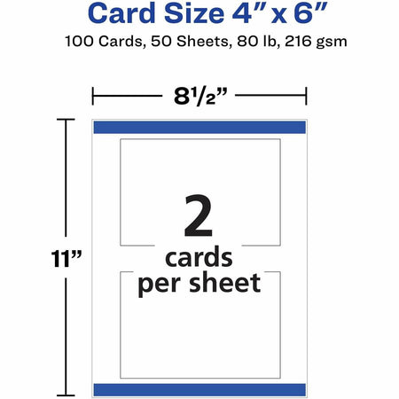 Avery® Sure Feed Postcards - 97 Brightness - 4" x 6" - 80 lb Basis Weight - 216 g/m² Grammage - Matte - Perforated, Heavyweight, Rounded Corner, Print-to-the-edge, Recyclable, Biodegradable, Coated - White - 100 / Box