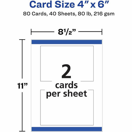 Avery® Sure Feed Postcards - 97 Brightness - 6" x 4" - 80 lb Basis Weight - 216 g/m² Grammage - Matte - Perforated, Heavyweight, Rounded Corner, Uncoated, Recyclable, Biodegradable, Print-to-the-edge, Sturdy - White - 80 / Box