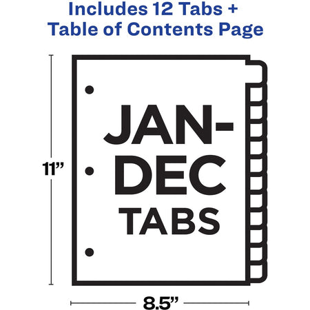 Avery® Table 'N Tab Monthly Divider Set - 12 x Divider(s) - Jan-Dec - 12 Tab(s)/Set - 8.5" Divider Width x 11" Divider Length - 3 Hole Punched - White Paper Divider - Multicolor Paper Tab(s) - 12 / Set