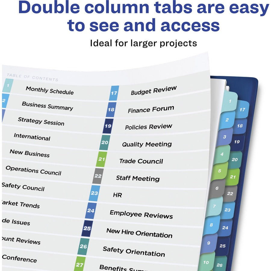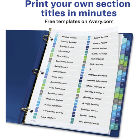 Avery® Two-Column Table Contents Dividers w/Tabs - 32 x Divider(s) - 1-32 - 32 Tab(s)/Set - 8.5" Divider Width x 11" Divider Length - 3 Hole Punched - White Paper Divider - Multicolor Paper Tab(s) - 32 / Set