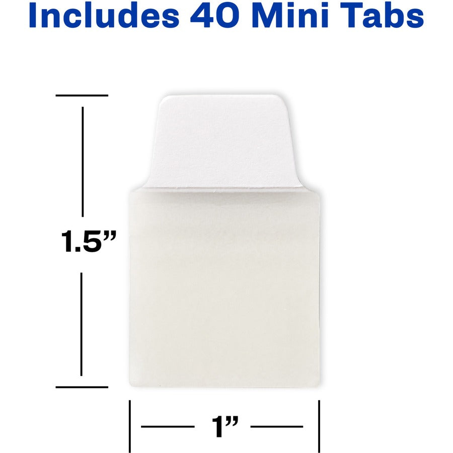 Avery® Ultra Tabs Repositionable Mini Tabs - 40 Tab(s) - 10 Tab(s)/Set - Clear Film, White Paper Tab(s) - 40 / Pack