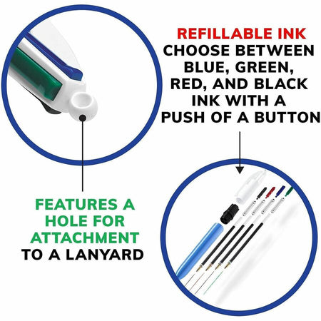 BIC 4-Color Retractable Ball Pen - 1 mm Medium Conical Pen Point - Refillable - Retractable - Black, Blue, Green, Red Ink - Opaque Blue Barrel - 3 / Pack