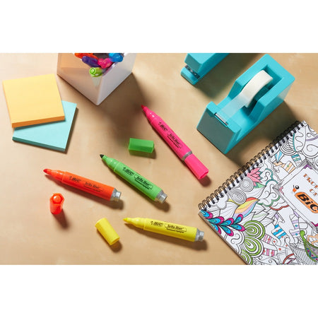 BIC Brite Liner Grip XL Highlighters, Assorted - Chisel Marker Point - Fluorescent Assorted Ink - 4 / Set
