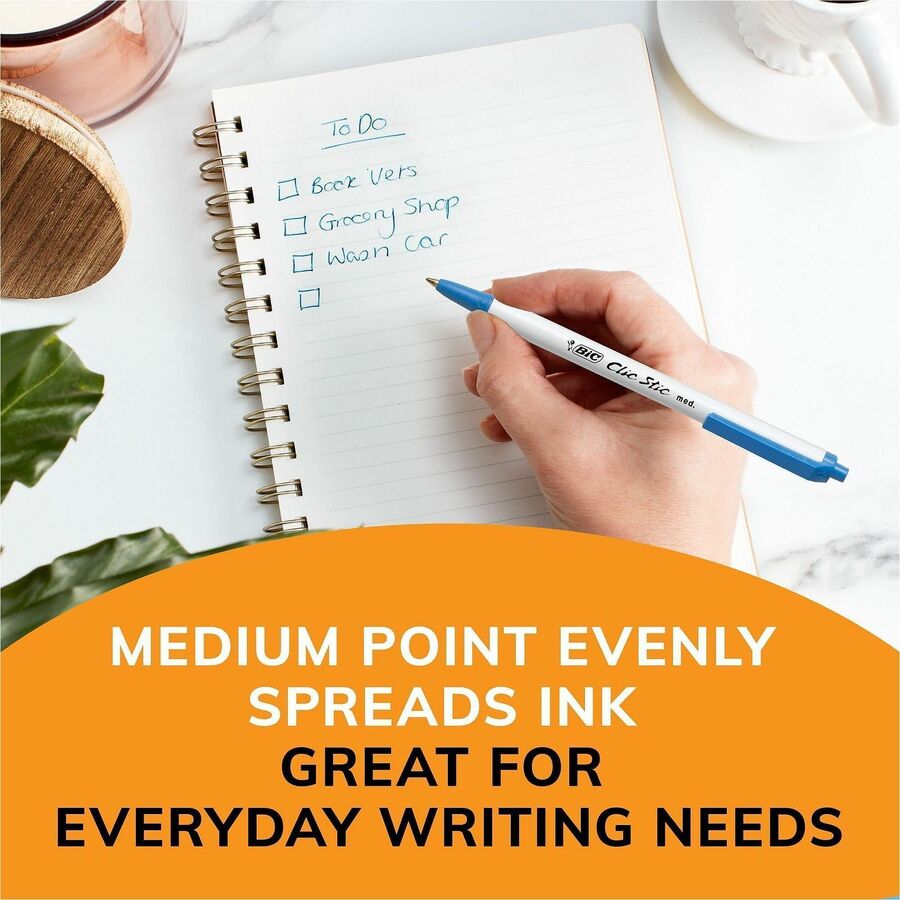 BIC Clic Stic Retractable Ballpoint Pens - Medium Round Pen Point - Retractable - Blue Ink - Clear Barrel - 1 Dozen