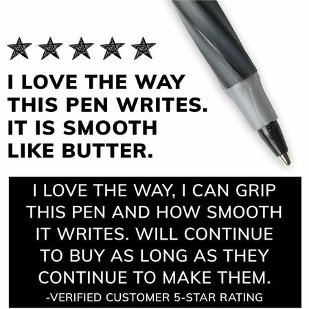BIC Fine Point Round Stic Pens - Fine Pen Point - Black Ink - Gray Barrel - 1 Dozen